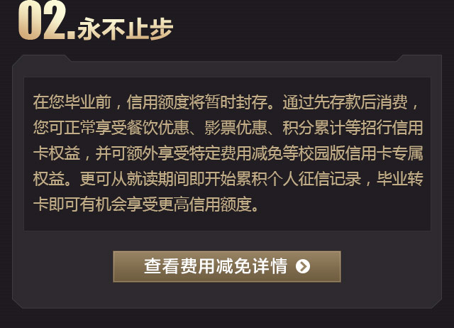 预借现金手续费优惠:即日起至2017年3月31日,在您毕业后成功办理非校园版信用卡前,每月使用本卡在ATM机等渠道取现将免收前两笔预借现金手续费。